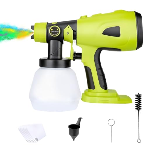 Trådlös färgspruta för Ryobi 18 V-batteri, handhållen HVLP elektrisk färgsprutpistol med 4 munstycken 1 000 ml behållare för väggar staket gör-det-själv hus hemmålning