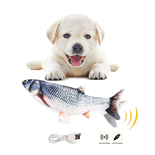 Bikirin hundleksak elektrisk fisk, interaktiv simulering tvättbar plysch fiskleksak, uppladdningsbar gungleksak fisk med USB-kabel för valpar och husdjur att leka med