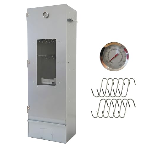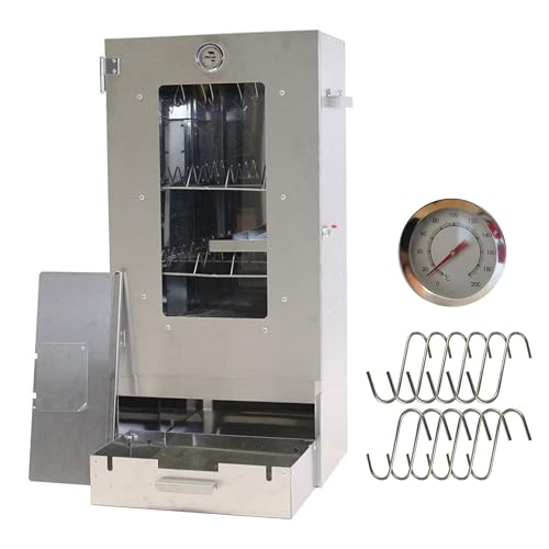 Rökugn med skiva - Fisk och kött - Ved/Gas/El - Hållbar - Med visningsfönster - Inkl. Termometer, rökkrok Fiskgaller (höjd 80,5 cm)