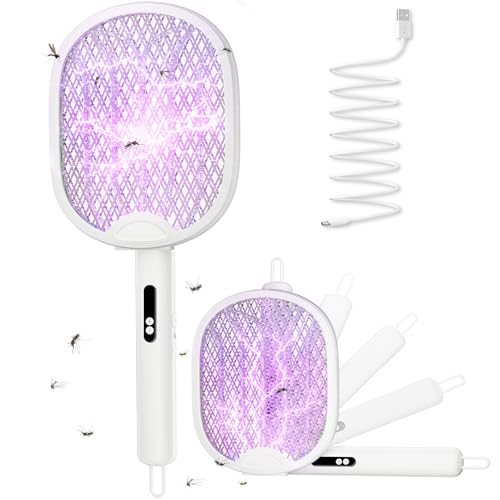 Aspectek Uppgraderad elektrisk flugsmälla 3 000 V för inomhus- och utomhusbruk, bärbar, vikbar, uppladdningsbar med förbättrad batteritid, USB-laddningskabel (2 st)