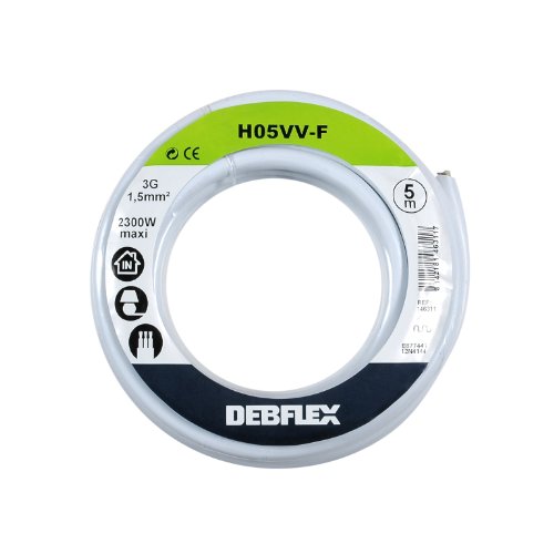 Kabelrulle - elektrisk trådspole - elektrisk kabel - kabelrulle - mjuk kabelrulle 5 meter HO5VV-F 3G1.5 mm ² - grå - 146312 Debflex