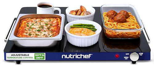 NutriChef Stor Värmeplatta – 50,8 × 30,5 cm Elektrisk Kokplatta med Glasyta – Perfekt för Bufféer, Fester, Catering & Restauranger