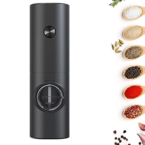 Elektrisk pepparkvarn, kryddkvarn, saltkvarn | batteridriven, LED-ljus, justerbar finhet, lämplig för paprika, kryddor, spiskummin (svart)