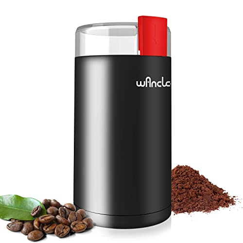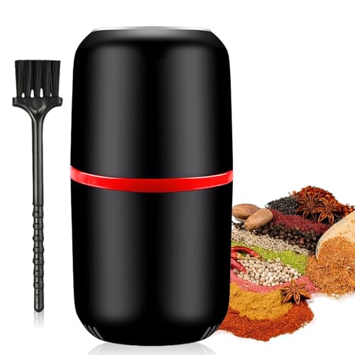 Kaffekvarn, Wancle elektrisk kaffekvarn, tyst kryddkvarn, One Touch kaffekvarn för bönor, kryddor och mer, med ren borste (svart + röd)