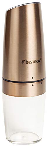Bestron Elektrisk kryddkvarn med LED-belysning, helautomatisk start- och stoppfunktion, keramisk kvarn, färg: Koppar