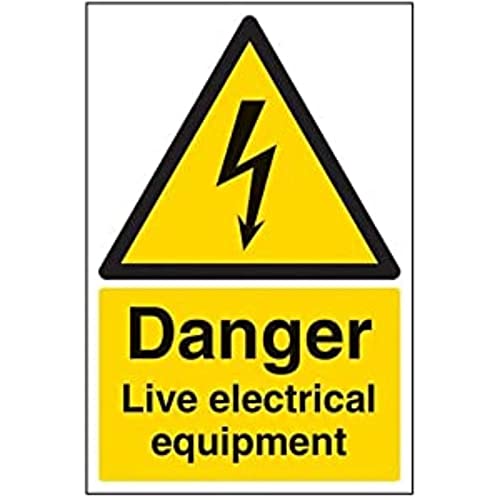 VSafety Signs 68021AU-R "Danger Live Electrical Equipment" varning elektrisk skylt, 1 mm styv plast, porträtt, 200 mm x 300 mm, svart/gul