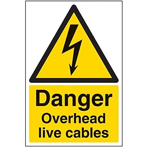 VSafety Signs 68015AU-R "Danger Overhead Live Cables" varning elektrisk skylt, 1 mm styv plast, porträtt, 200 mm x 300 mm, svart/gul