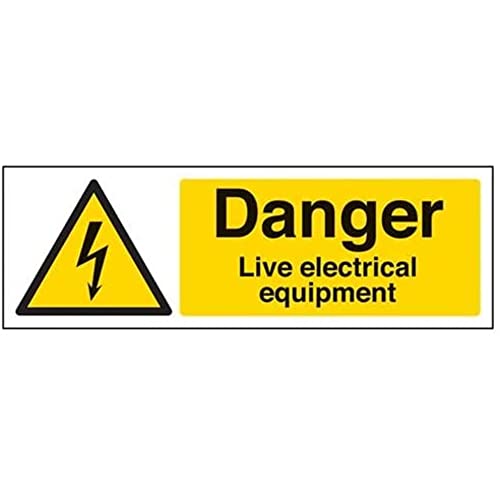 VSafety Signs 68043AX-S"Danger Live Electrical utrustning" varning elektrisk skylt, självhäftande, landskap, 300 mm x 100 mm, svart/gul