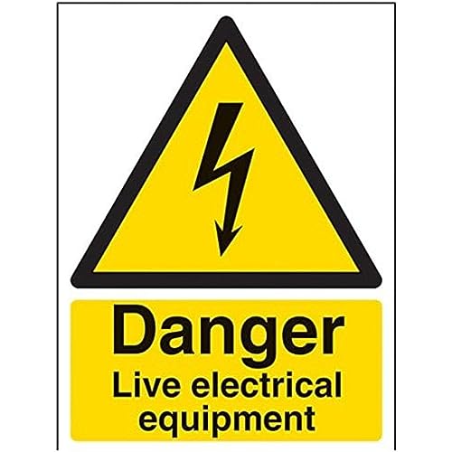 VSafety Signs 68021BC-R "Danger Live Electrical Equipment" varning elektrisk skylt, 1 mm styv plast, porträtt, 300 mm x 400 mm, svart/gul