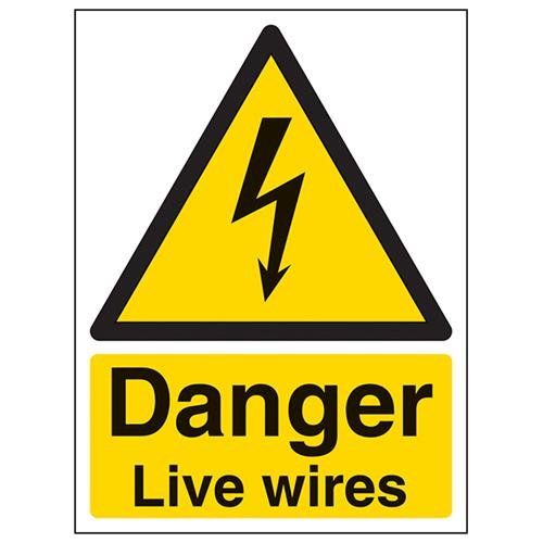 VSafety Signs 68011AN-S "Danger Live Wires" varning elektrisk skylt, självhäftande, porträtt, 150 mm x 200 mm, svart/gul