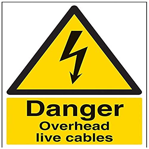 VSafety Signs 68015BC-R "Danger Overhead Live Cables" varning elektrisk skylt, 1 mm styv plast, porträtt, 300 mm x 400 mm, svart/gul
