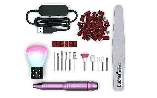 PORTENTUM Professionell nagelsvarv 13 i 1 25,000 RPM- Säker och kraftfull elektrisk manikyr och pedikyr, elektrisk nagelfil, Full uppsättning manikyr och pedikyr för halvpermanenta naglar