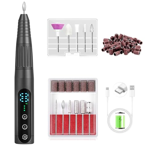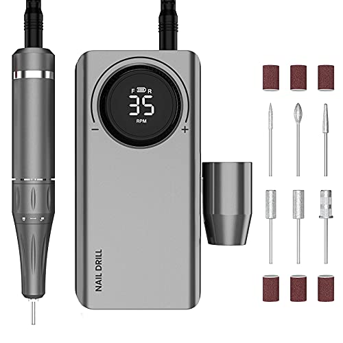 Delanie Professionell bärbar elektrisk nagelfil 35000 rpm uppladdningsbar elektrisk manikyr set med LED-display&USB-laddning, Elektrisk Nagelborr manikyr pedikyr uppsättning för nagelkonst (grå)