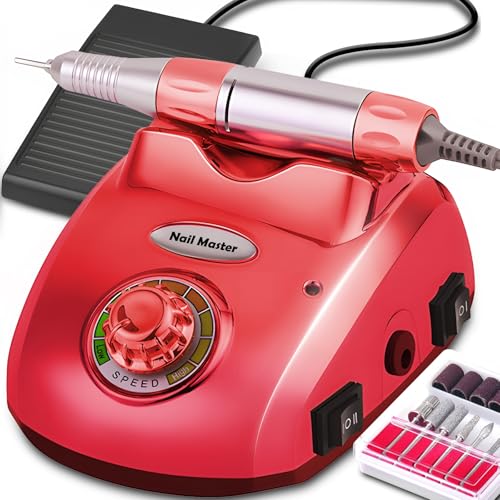 Retoo Elektrisk nagelfräs, professionell nagelfilset, 35 000 varv/min, 65 W, nagelfil manikyr pedikyr, för gelnaglar, akrylnaglar, gel, ta bort förhårdnader, nagelstudio, justerbar hastighet, röd