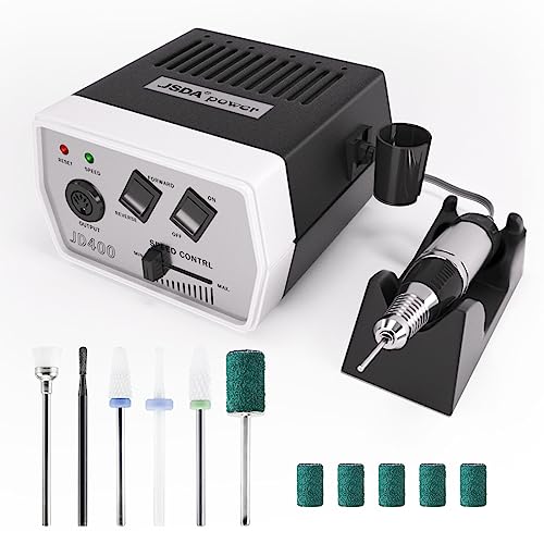 Nagelfräs elektrisk JSDA® JD 400, professionell 30 000 varv/min, set nagelfil manikyr pedikyr gelnaglar, fräs inklusive 10 tillbehör, akrylnaglar, 4 bits, förhårdnadsborttagare, privat & studio