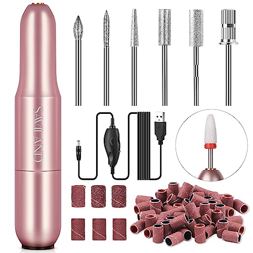 Saviland Elektrisk nagelborrmaskin, elektrisk nagelfil, Efile nagelborr, manikyr med 6 st nagelborrbitar, 51 st slipband för akrylnaglar, pedikyr, polering, form, verktyg