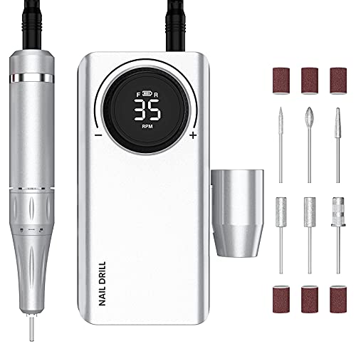 Delanie Professionell bärbar elektrisk nagelfil 35000 rpm uppladdningsbar elektrisk manikyr set med LED-display&USB-laddning, Elektrisk Nagelborr manikyr pedikyr uppsättning för nagelkonst (silver)