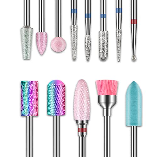 SPTHHPY Nagelborrkronor, set, 10 st elektriska nagelborrsats, 3/32 tums keramik/volframkarbid, elektriska nagelfilar, elektrisk manikyrset, manikyr, pedikyr, hemsalong användning
