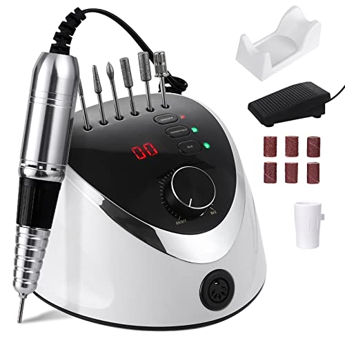 Nagelfräs för gelnaglar, elektrisk nagelfil, 35 000 varv/min, manikyr och pedikyr, 6 i 1 hand och fotvårdsapparat med LED-display, fotpedal, justerbar hastighet för borttagning av kallus, nagelstudio