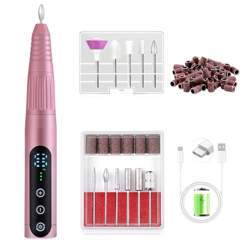 Elektrisk nagelborrfil, lycka 35 000 varv/min nagelfilsmaskin med USB-port justerbar hastighet LCD-skärm bärbar akryl och gelnaglar manikyr pedikyr poleringsmaskin för hemsalong nybörjare användning