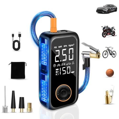 YUGUANG Elektrisk luftpump 150 PSI luftpump med 12 V DC 6 000 mAh batteri bärbar cykelpump med digital display LED ljus mini kompressor pekskärm 4 lägen för bil cykel motorcykel boll.