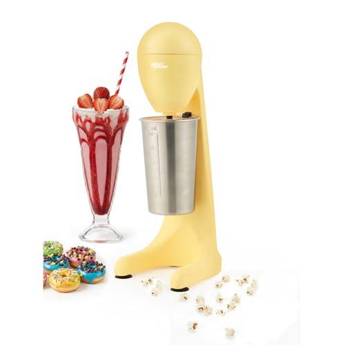 Giles & Posner Funfair Milkshake Maker – iskaffe Maker, 2 hastigheter, 500 ml mugg och kniv i rostfritt stål, mjölkskum, cocktails, elektrisk mixer, matt gul, 100 W