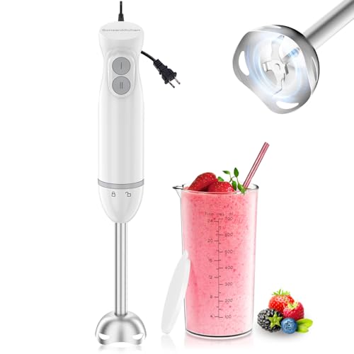 Bonsenkitchen mixer, stavmixer elektrisk, steglös hastighet, rostfritt stål, mätkopp (vit)