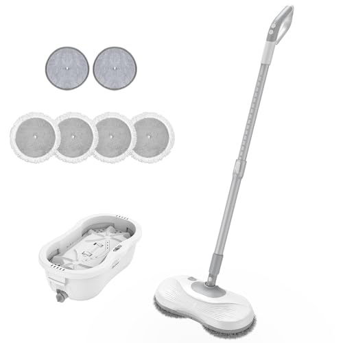 SHZICMY Trådlös elektrisk mopp golvmopp med sprayfunktion, 350 ml vattentank, spin mopp, LED-belysning, elektrisk polermaskin för trägolv/kakel/vinyl/laminat