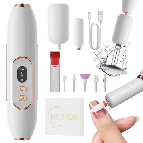 HiLUNDA Professionell Uppladdningsbar Nagelborr - 2 i 1 Makeup Borstrengörare & Trådlös Elektrisk Nagelfil, 1500 mAh Batteri med 3 Hastigheter, Portabel Efile Set för Akryl/Gel Naglar, Hemma & Resor