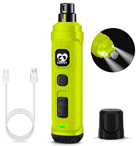 Casfuy Hundfil med 2 LED-lampor, kraftfull 2-växlad elektrisk nagelklippare för husdjur, tyst slipverktyg för små, medelstora och stora katter och hundar