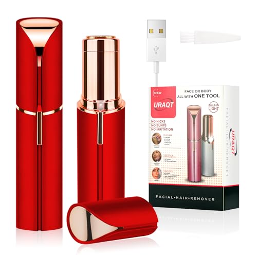 URAQT Ansiktshårborttagare för kvinnor, USB elektrisk hårborttagning, smärtfri ansiktsrakapparat, elektrisk rakhyvel för kropp, ansiktshår, läppar och haka, med LED-ljus (röd)