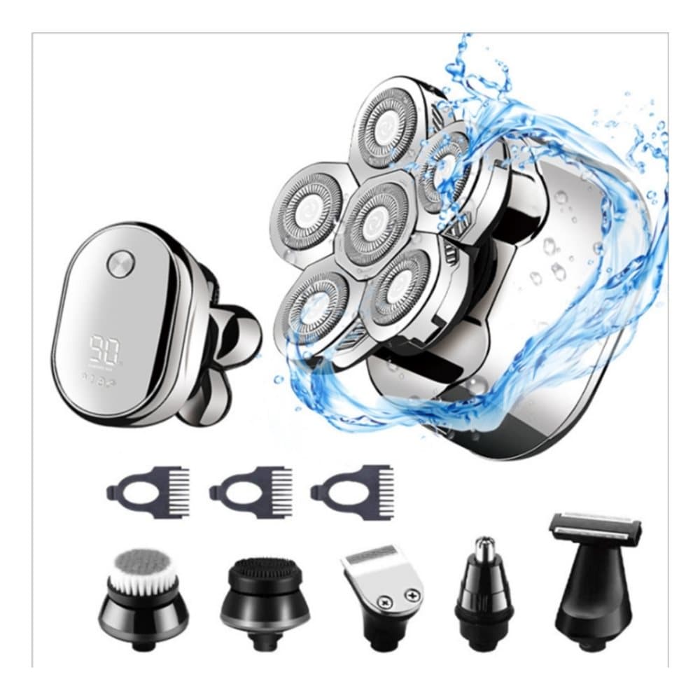Elektrisk rakhyvel för skalliga män, 6 i 1 huvud rakapparat vattentät våt och torr 7 huvuden elektrisk rakapparat skägg trimmer trådlös ergonomisk design uppladdningsbar grooming