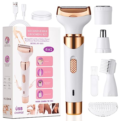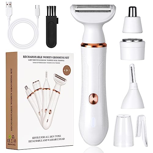 ACWOO Electric Lady Rakapparat, sladdlös 4 i 1 elektrisk rakapparat för kvinnor, uppladdningsbar smärtfri elektrisk rakhyvel Bikinitrimmar Vått och torrt hårborttagning för ansiktsben underarm, näsa
