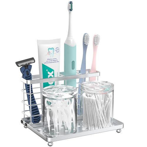 ZCCZ Tandborsthållare, badrumsförvaring, organisatör, hållare för elektrisk tandborste, tandkräm, tandtråd, rakhyvel, kam, sminkborste med mera