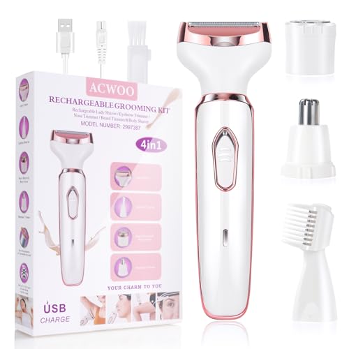 ACWOO Elektrisk Rakapparat, Sladdlös 4 I 1 Elektrisk Hårborttagare För Kvinnor, Uppladdningsbar Smärtfri Elektrisk Rakhyvel Bikinitrimmar Vått Och Torrt Hårborttagning För Ansiktsben Underarm, Näsa Och ögonbryn