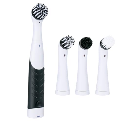 Alpina Elektrisk rengöringsborste – badrumsborste IPX5 med 4 tillbehör – batterienhet för kök och kakel – handenhet med gummihandtag