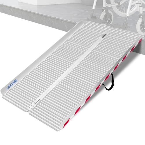 LIEKUMM Rullstolsramp 61 cm, 77 cm extra bred aluminiumramp rullstol, 300 kg kapacitet, vikbar rullstolsramp för trappor, trappsteg, trottoarstenar, tröskelramp för elektrisk rullstol, barnvagn