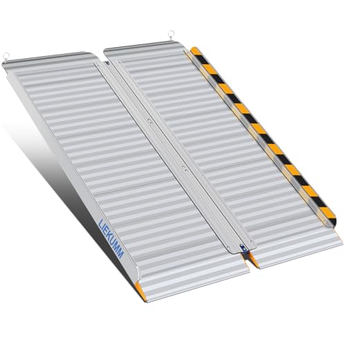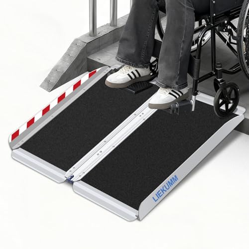 LIEKUMM Rullstolsramp 121 x 77 cm, 450 kg lastkapacitet rullstolsramp vikbar, rullstolsramp i aluminium för trappor, trappsteg, trottoarstenar, tröskelramp för elektrisk rullstol, barnvagn