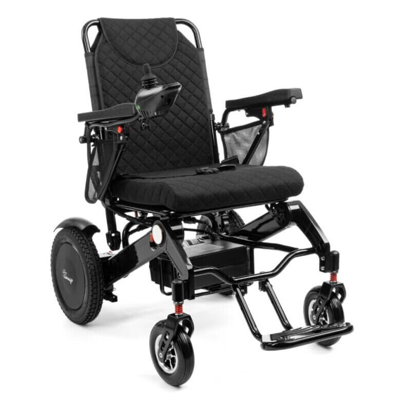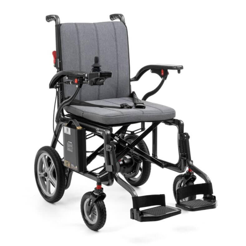 Lätt vikbar elektrisk rullstol av kolfiber, väger endast 17,5 kg, resestorlek, flygbolagsgodkänd, dubbelt bromssystem, bärbara motoriserade rullstolar för vuxna, borstlös