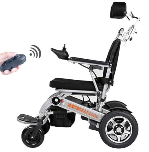 PXOCDEO Ultralätt hopfällbar elektrisk rullstol med fjärrkontroll och nackstöd, lämplig för äldre och funktionshindrade, Li-ion batteri 24V 20Ah