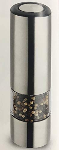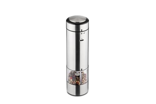 Stanley Rogers 56151 saltkvarn elektrisk, pepparkvarn med justerbar keramisk kvarn, kryddkvarn av hög kvalitet, hållbar kvarn för salt, peppar och kryddor (färg: silver/transparent)