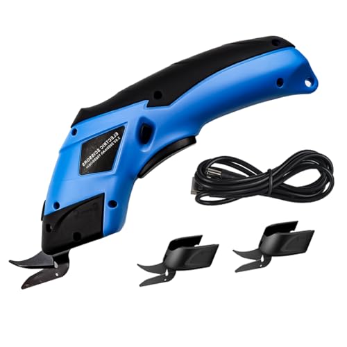 Gugxiom Elektrisk sax, mattskärare med 2 utbytbara blad, trådlös elektrisk sax för att skära tyg/läder/matta/kartong (1 + 2 blad blå)