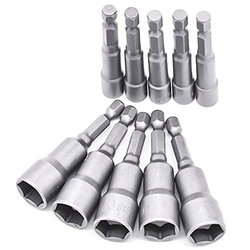 10 stycken skruvdragaruttag 6–19 mm - bitadapter, sexkantigt för handborrmutter, elektrisk skruvmejsel, hylsnyckel (kromvanadinstål)