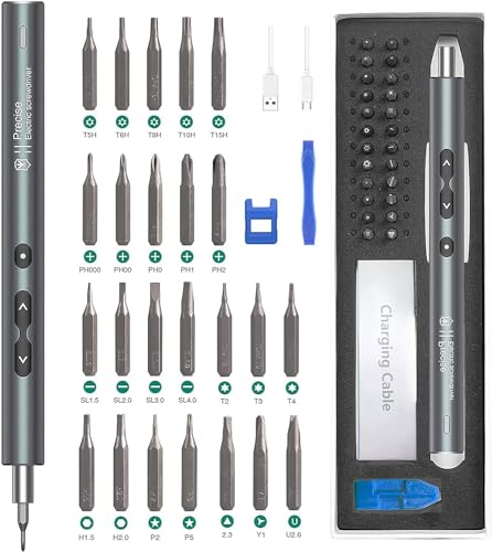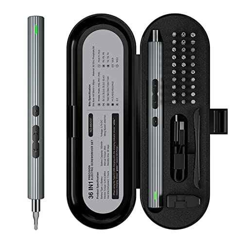 Senaste mini-elektrisk skruvmejsel, 36-i-1 precisions-skruvdragare, set med 30 bits, magnetiska finmekaniker skruvmejsel, elektrisk skruvmejsel med LED-lampor för telefon, klockor, bärbar dator