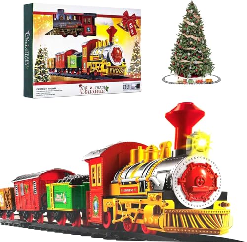 Herenear Jul elektriskt tåg, julhängande tåg, elektriskt lokomotiv, klassiskt och kreativt tåg, elektrisk jultåg present för gran, barn, pojkar och flickor (i träd)