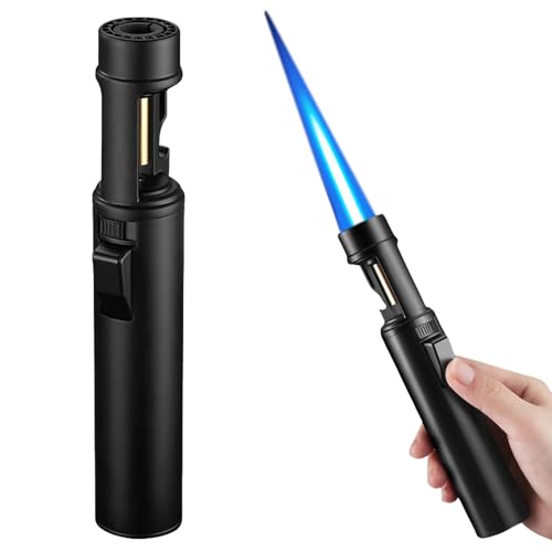 2 x tändare gas påfyllningsbar stormtändare jetflamme tändare lång 19 cm, ljuständare elektrisk vindtät för ljus matlagning camping grillspis, gåvor för män (utan gas)