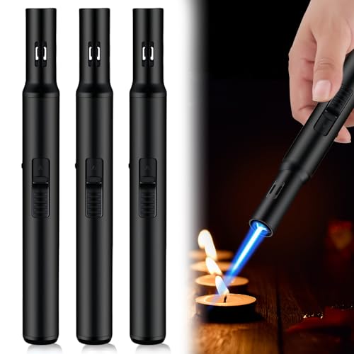 3 x tändare gas påfyllningsbar stormtändare jetflamme tändare stav lång 19 cm, ljuständare elektrisk vindtät för ljus matlagning camping grill, öppen spis, presenter till män (utan gas)