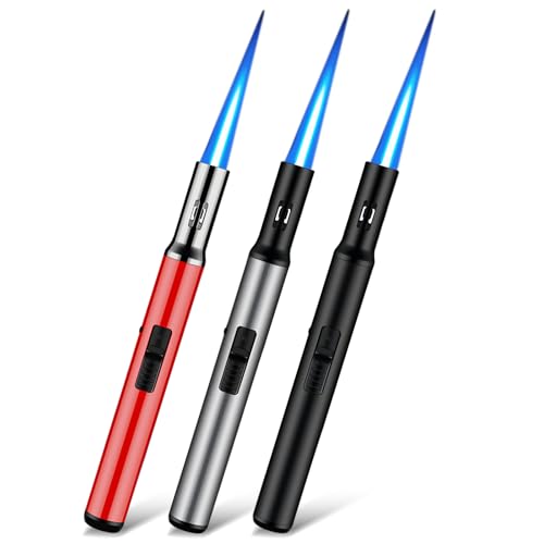 3 x tändare gaspåfyllningsbar stormtändare jetflamme tändare lång 19 cm, ljuständare elektrisk vindtät för ljus matlagning camping grill öppen spis, presenter till män (utan gas)
