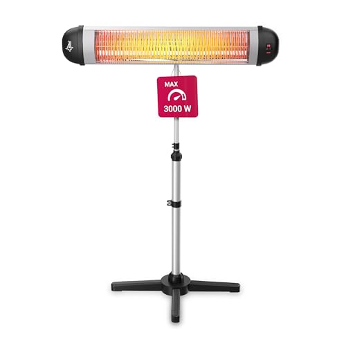 Strålningsvärmare SUNTEC Heat Ray Carbon 3000 outdoor | Inkl. fjärrkontroll | Terrassvärmare 3000 Watt | Elektrisk uppvärmning utomhus | Infravärmare med teleskopfot för balkong och terrass
