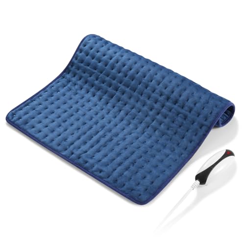 Värmekudde med automatisk avstängning, elektrisk värmekudde 50 x 60 cm med 5 snabbuppvärmningstekniker, överhettningsskydd för rygg, axlar, nacke, mörkblå
